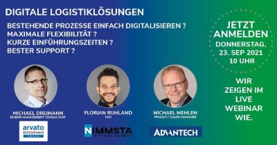 Categories: KonferenzDie digitale Logistiklösung für die Intralogistik mit Arvato, Advantech und NIMMSTA (Webinar | Online)