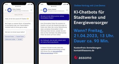 Categories: VortragOnline-Vortrag: Nutzen von KI-Chatbots für Stadtwerke und Energieversorger (Vortrag | Online)