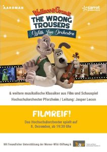 Nach Oper, Orchester- und Themenkonzerten präsentiert das Orchester der Hochschule Pforzheim den nächsten Schritt seiner musikalischen Entwicklung: Unter dem Titel „Filmreif – das Hochschulorchester spielt auf“ erwartet das Publikum ein Abend voller Filmmusik, Klangfarben und cineastischer Momente. Mit „Wallace & Gromit – The Wrong Trousers: Live in Concert“ bringt das Ensemble erstmals eine Live-Begleitung eines preisgekrönten Kurzfilms ins Audimax. Das […]