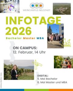 Schnuppervorlesung – Campusführung – Erfahrungsberichte von Alumni – Aromaparcours – Informationsbörse – Individuelle Beratung Passt ein Studium am Weincampus zu mir und was erwartet mich?Diese Frage wird am Infotag durch ein vielfältiges Programm „zum Anfassen“ geklärt. Die Studieninteressierten, ihre Familien und Freunde erwartet eine Schnuppervorlesung von Prof. Dr. Ulrich Fischer, eine Informationsbörse sowie ein Rundgang durch die Labore, Hörsäle und […]