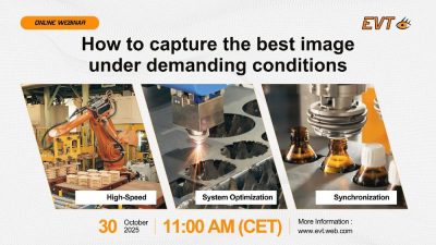 Webinar: Wie Sie unter schwierigen Bedingungen die besten Bilder aufnehmen 30. Oktober 2025 | 11:00 Uhr (CET) Ein klares Bild zu erhalten, ist nicht immer einfach – schnelle Produktionslinien, wechselnde Beleuchtung oder Bewegung können die Prüfung unzuverlässig machen. Wir zeigen praxisnahe Wege, wie Sie durch bessere Synchronisation, Timing und Setup-Anpassungen die Bildqualität und Systemleistung verbessern können. Erfahren Sie, wie Ihr Vision-System auch unter schwierigen Bedingungen zuverlässig arbeitet. Hier anmelden Eventdatum: Donnerstag, […]