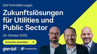Online-Event von GAMBIT und cerebricks am 30. Oktober 2025 – Wie Energieversorger und öffentliche Einrichtungen mit SAP S/4HANA Public Cloud, SAP Business AI und digitalen Innovationen von SAP zukunftsfähig werden Die SAP-Experten von GAMBIT Consulting und cerebricks informieren am 30. Oktober 2025 darüber, wie Unternehmen aus der Energieversorgungsbranche und dem öffentlichen Sektor mit SAP S/4HANA Cloud, SAP Public Cloud, SAP […]